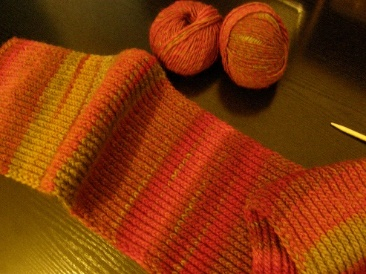 Strickanleitung für einen flauschig-warmen Wollschal im einfachen Rippenmuster mit Patent-Rand und italienischem Maschenanschlag