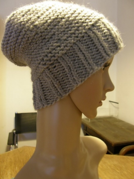 Siehe Wollmütze im Krausrechts-Muster für die Strickanleitung dieser Mütze